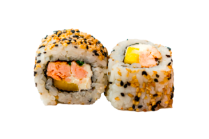 Roll au saumon grille, cream cheese, avocat, ciboulette. allergéne: produit laitier , poisson.