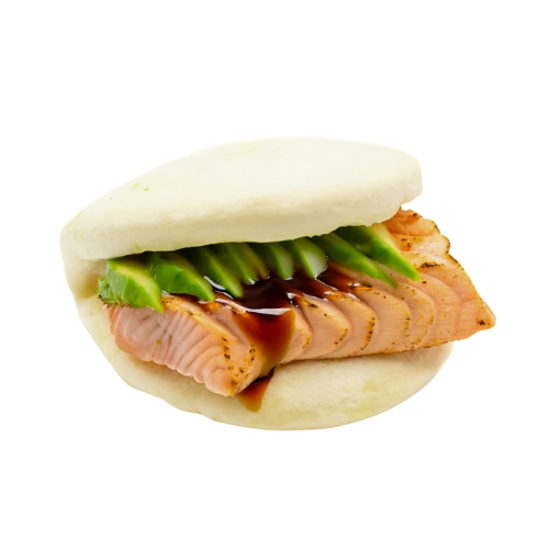 Pain chaud fourré de mangue, avocat, concombre, mayo spicy, sesame, teriyaki sauce. allergéne: produit laitier, oeuf , sésame.