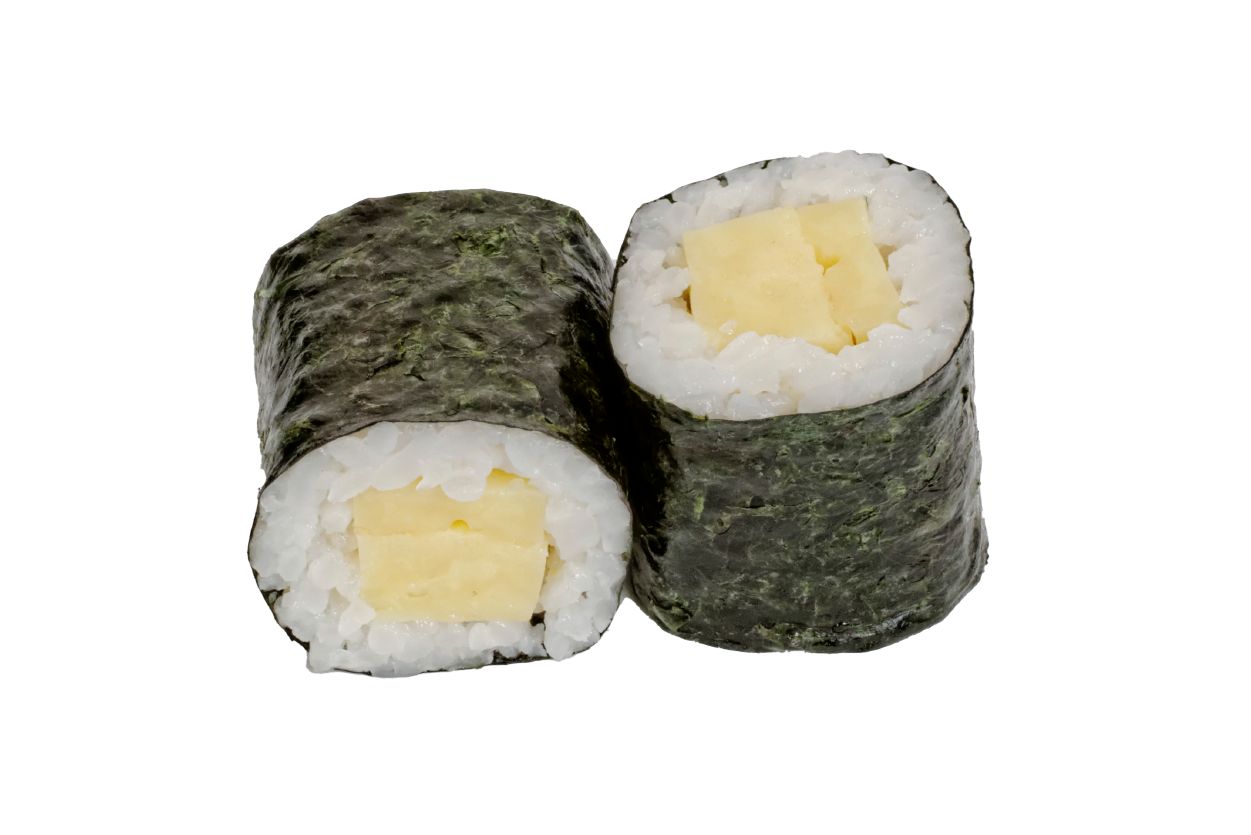 Maki entouré de feuille d'algue & fourré de riz, omelette. allergéne: omelette.
