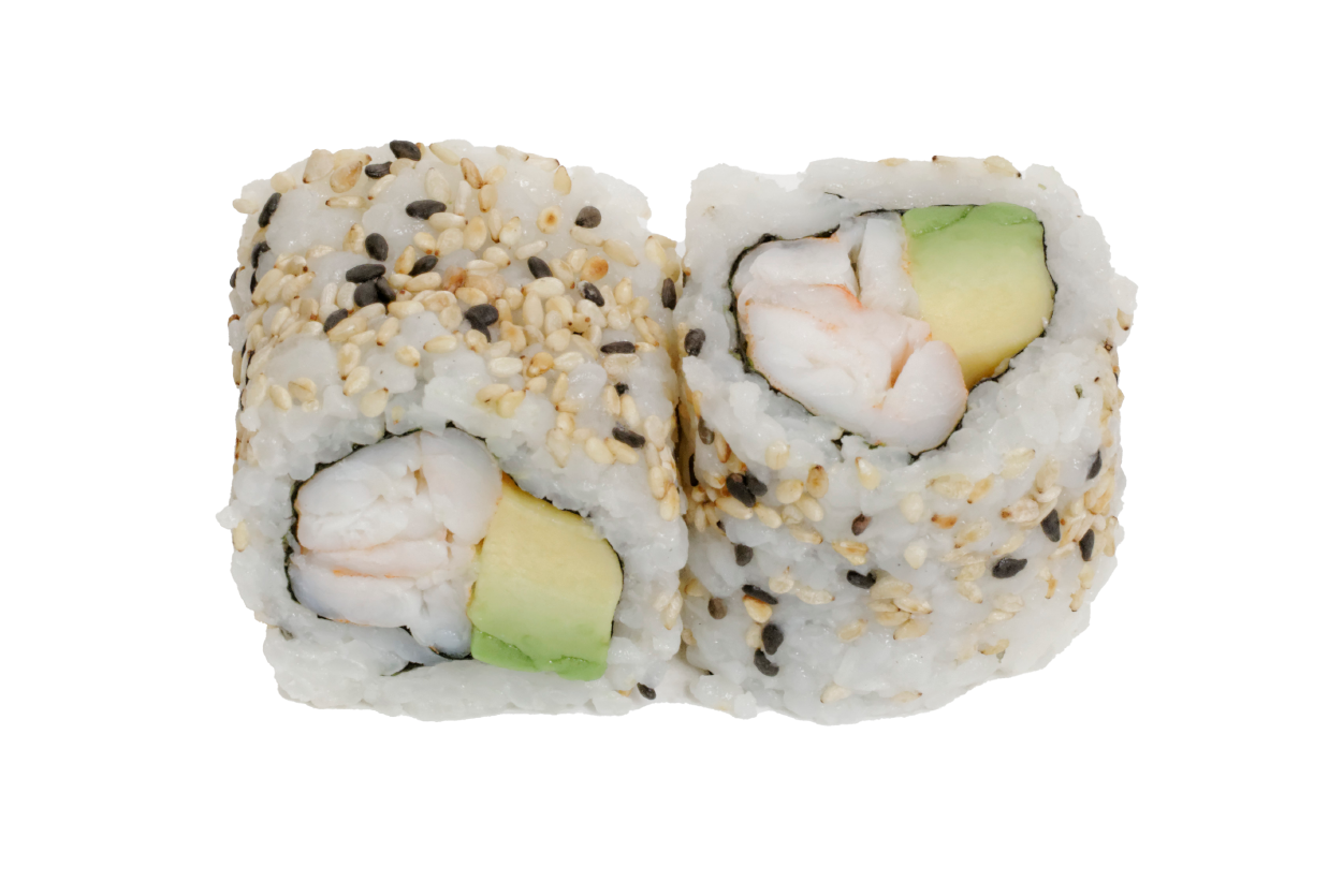 Roll entouré de sesame et fourré d'avocat, crevette. allergéne:crustacé , sésame.