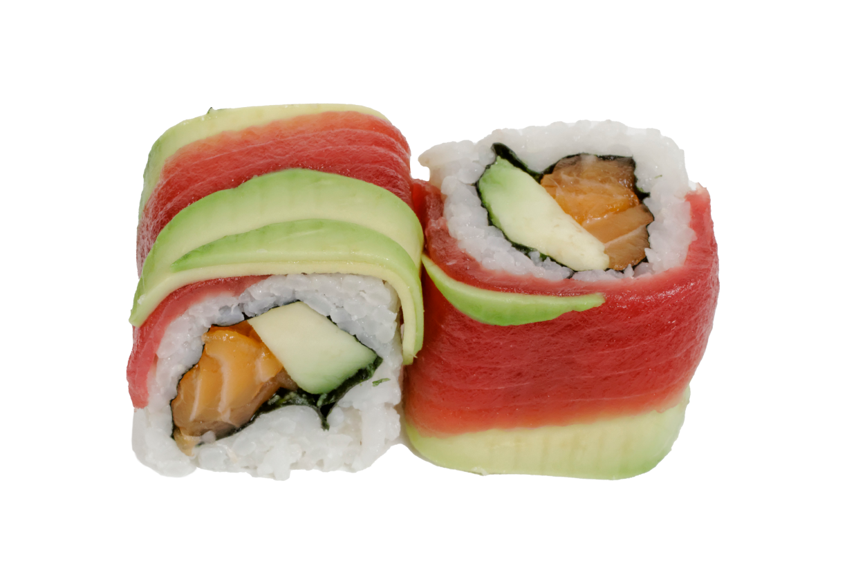 Roll de riz vinaigré , avocat, thon cru. allergéne: poisson